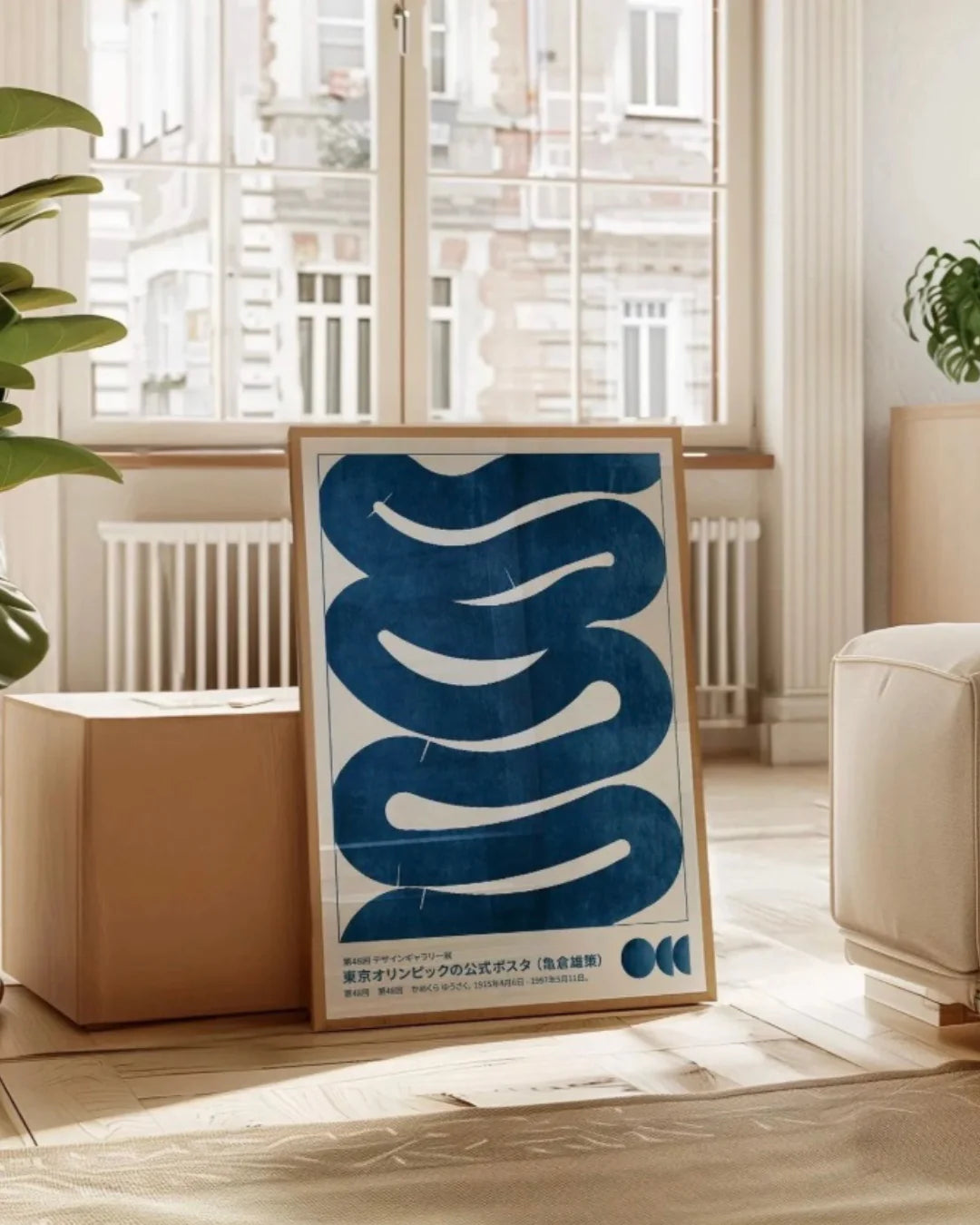 Inspired by Japanese minimalism, this piece captures the fluid harmony between form and movement. The deep blue tones and soft textures bring a calm and sophisticated energy to any room. Whether displayed alone or paired with other art prints, it creates a subtle statement that draws the eye without overpowering the space.